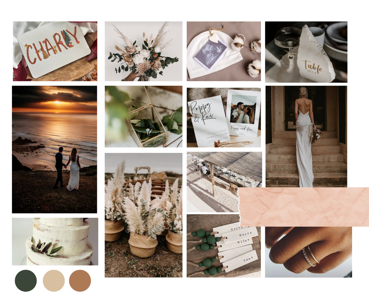 Découvrez des visuels de faire-part, remerciements, étiquettes et nominettes déjà pré-créés et choisissez celui qui vous correspond. Cette option vous offre une base de design que vous pouvez personnaliser en ajustant les couleurs, les polices ainsi qu'en y ajoutant vos informations spécifiques (Noms, dates et détails de l'évènement).
